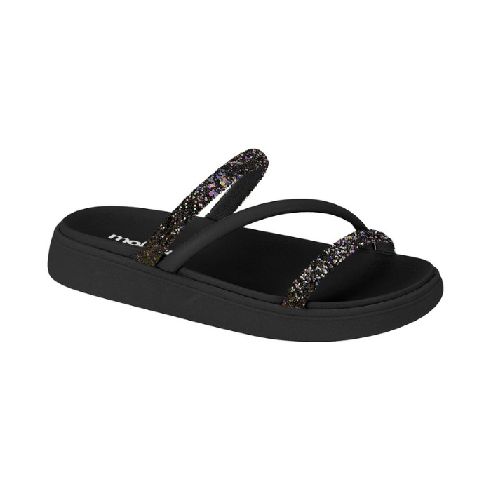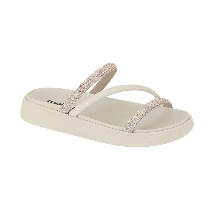 Confeccionada Napa Turim, detalhes pensados em strass, a palmilha em PU é macia e o seu solado em borracha garante segurança e estabilidade em cada passo. Nada melhor que ter conforto nos pés com a Sandália Flatform Moleca.